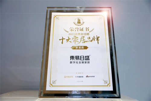在颁奖盛典上,东易日盛凭借优越的产品质量、良好的消费者口碑,从上百家家居品牌脱颖而出,再度斩获获“2023年消费者信赖十大家居品牌”充分证明了消费者以及社会各界对东易日盛的高度认可及支持。