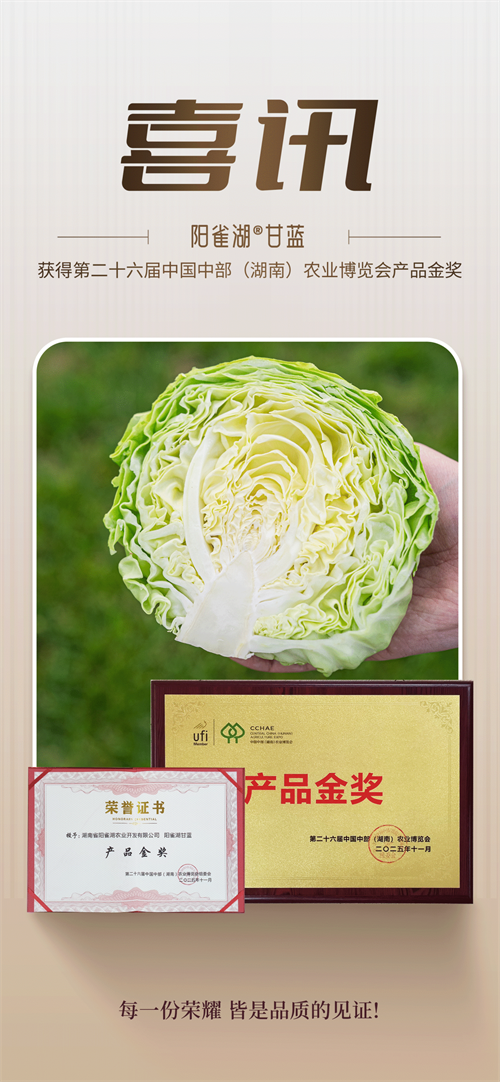 科技育种,精耕品质筑根基。品质是农产品的核心竞争力,阳雀湖农业集团始终将品种培育与品质把控放在首位。集团与邹学校院士团队联合研发樟树港辣椒,应用太空育种技术优化品种,斩获国家地理标志、绿色食品A级认证等多项荣誉;对千年原生毛白菜品种开展3年提纯复壮,甘蓝采用生态种植与有机管理模式,三款产品均获2025年第二十六届中国中部(湖南)农博会产品金奖。目前集团在全国布局15个标准化种植基地,总面积达3万亩,各基地依托地域优势培育特色农品,实现全年品质稳定、市场供应充足。