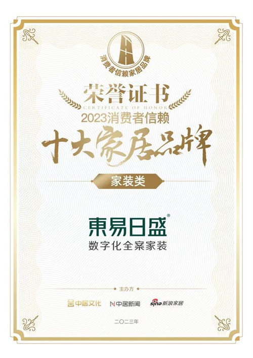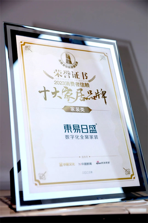 在颁奖盛典上,东易日盛凭借优越的产品质量、良好的消费者口碑,从上百家家居品牌脱颖而出,再度斩获获“2023年消费者信赖十大家居品牌”充分证明了消费者以及社会各界对东易日盛的高度认可及支持。